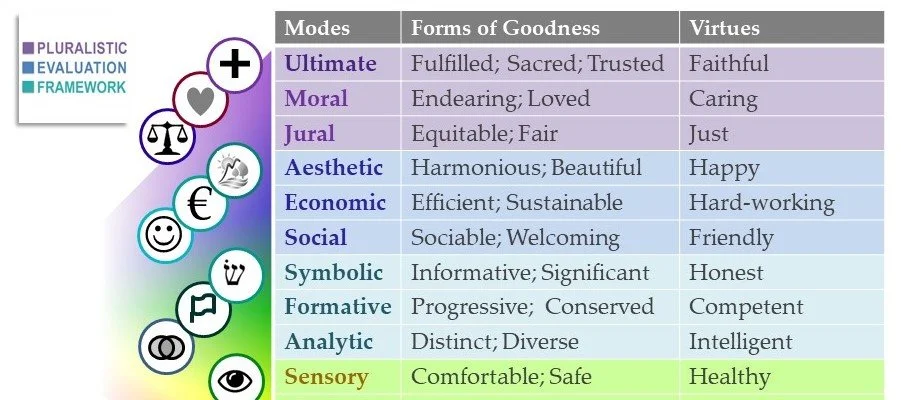 While all kinds of stakeholder (1st pillar) and process (2nd pillar) remain essential, the analysis of valuing (3rd pillar) can therefore start from a focus on the moral or ultimate mode.